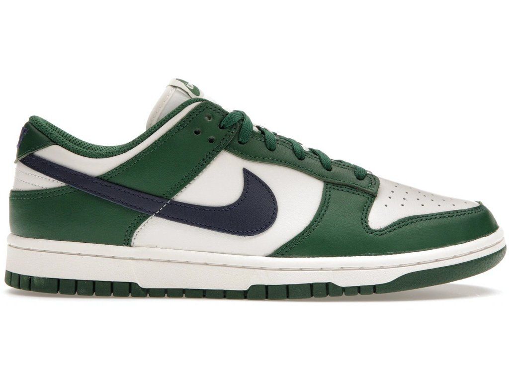 Dunk Low Gorge Green Midnight Navy (W) je atraktivní ženská verze oblíbeného modelu Nike Dunk Low, která oslní svým jedinečným barevným spojením. Tento model představuje harmonickou kombinaci barvy Gorge Green, která pokrývá většinu vrchní části boty, a Midnight Navy, která je aplikována na bočních panelech, kolem kotníku a na jazyku. Díky této kombinaci nabízí teniska svěží nový vzhled, zatímco si zachovává ikonickou a časem prověřenou siluetu Dunk Low.